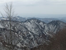 | a.m.8:59 林道から尾根に取り付く。 | 七姫山・大辻山方面。 | a.m.9:19 立山・弥陀ヶ原方面。 |