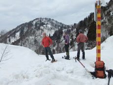 | a.m.10:40 文登研前進基地 | a.m.10:42 積雪は3㍍ | p.m.0.00 今日歩いて来た稜線を眺める。 |