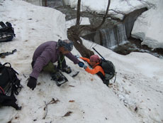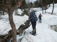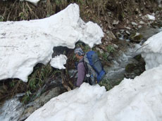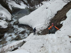 | p.m.0:11 文登研から人津谷へ・・・ | p.m.0:38 徒渉地点 何処から渡ろうか? | p.m.0:40 徒渉地点 思い切って・・ |