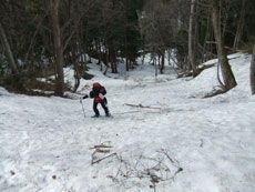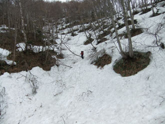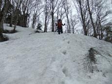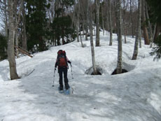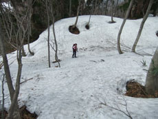 | 残雪を期待し、それを辿るつもりであったが 、5月の山は、雪がない斜面が多かった。 |