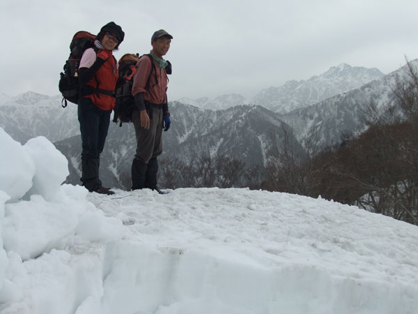 | 林道をご一緒した富山HCの金光夫妻と 標高850m付近でお別れ。 ご夫妻は前大日岳方面に向かわれた。 |