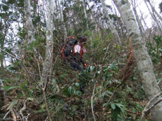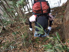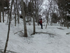 | 同じ所を降りるのを怖がった「山ノ神」で | あったが、雪を拾うルートに心掛けた。 | でも、何度も、ヤブの中に突入となった。 |