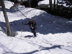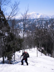 | 標高850m付近。大きく迂回する 林道を、ショートカットに入る手前。 標高にして50m稼げる。 |