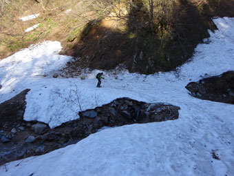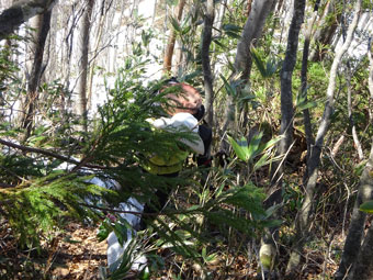 急騰箇所ではヤブの中へ・・・ |