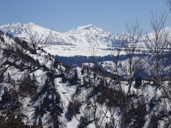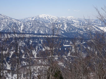 | 大明神山(左)から、毛勝山・釜谷山・猫又山 |