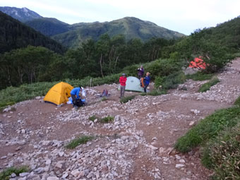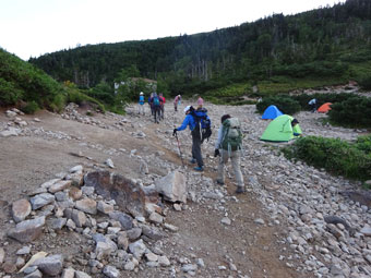 午前5時半頃、北ノ俣岳へ向かって、薬師峠キャンプ場スタートです。