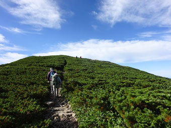 ハイマツの中を通って山頂へ・・・