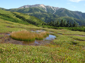 地塘と薬師岳 |