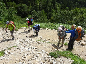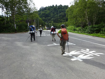 テントの撤収を終え帰途につく。(薬師峠)