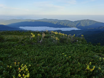 太郎山から有峰湖を見下ろす。 |