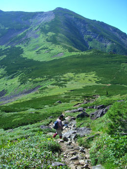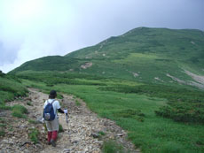 | a.m.8:35 大きく山頂が見えて来る。 | a.m.8:55 山頂へ最後の登り |