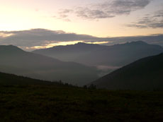 | 左・黒部五郎岳 右・笠ヶ岳 | a.m.6:00 北ノ俣岳に向かって・・ |