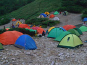 薬師峠4:05=太郞平小屋(4:25~30)=北ノ俣岳(6:30~40)=赤木岳(7:05~10)=中俣乗越7:55=黒部五郎岳頂上(9:40~10:20)=中俣乗越11:45=赤木山(12:35~50)=北ノ俣岳(13:25~30)=太郞平小屋14:55=薬師峠(15:15~16:10)=太郞平小屋16:25=三角点(18:10~20)=折立(19:35~?)=