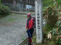 雨具を着込んでタープを張ったら、その後は降らなかった。「山頂まで行って来たら・・」 と山の神が勧めてくれたが、雨具を着込んだ時点で、登頂を諦めてしまっていたので、それよりも食事を優先する事にした。昨夜折立入りして、早朝から山頂を目指したという高岡のT氏が下山されてきた。(高岡ハイキングクラブ所属だそうである。)今日、お会いした唯一の登山者であったので、カメラのシャッターを切って頂いた。山頂に、割と拘る私であるが、この条件下で、山の神が、よく頑張ったと、褒めてやっても良い今日であった。
