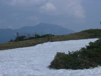 水っけがないのに、ミズバショウが、幾株も登山道に咲いていた。その先には、残雪が現れ、高度計を見ると、1793mを指していた。今度は、壊れかけた「ドラエモン」 である。それを過ぎれば三角点。(標高1870m)