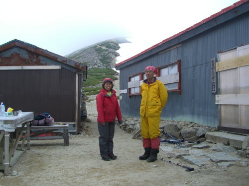 薬師岳山荘到着が、午後0時40分位であったから、山の神が、「何度も山頂まで、行って来たら・・」 と私に促したが、お天気の悪い中(結果的にはあまり降らなかったが・・) 一人残して行くのもどうかと思ったし、時間の関係上、せっかく担いできた食材を食べずに帰らなくてはならなくなるのも考えてしまった。