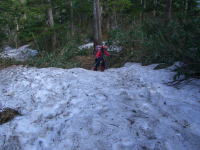 | 樹林帯には残雪が多くある |