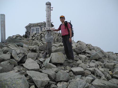 | 展望の利かない薬師岳山頂に唯一人。 |
