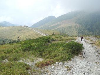 | ちょっぴり色付いた太郞平から薬師峠に向かう。 |