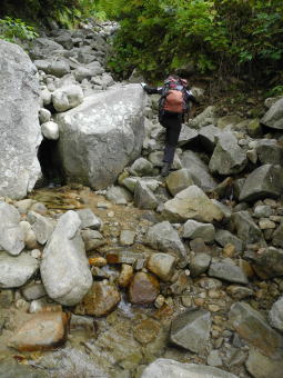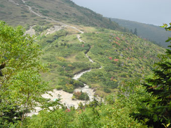 | 薬師峠キャンプ場を見下ろす。 | ガラ場を行く。 |