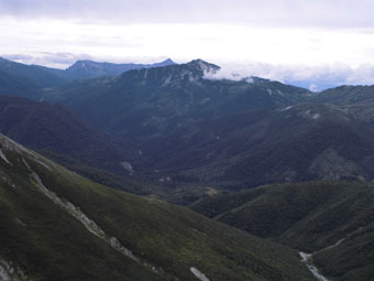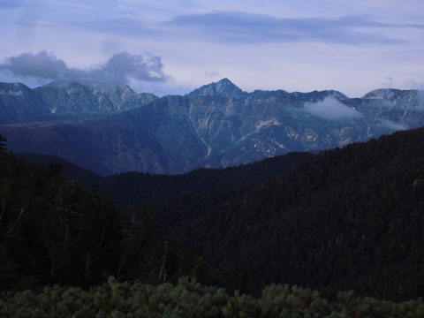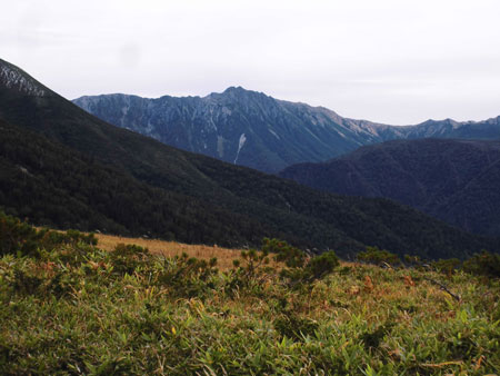 | 太郞平から、水晶岳(黒岳)を望む。 |