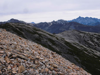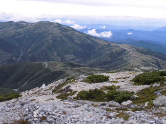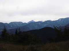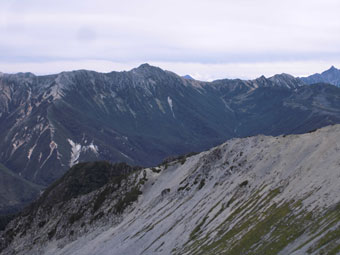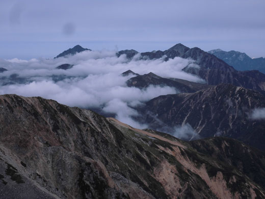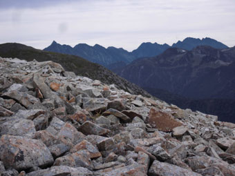 | 薬師岳山頂から、槍ヶ岳・穂高岳を望む。 |
