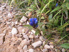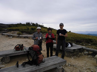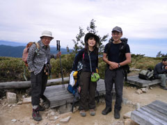 | 三角点到着。 | 池田氏に美味しい果物を頂く。 | リンドウに秋を感じる。 |