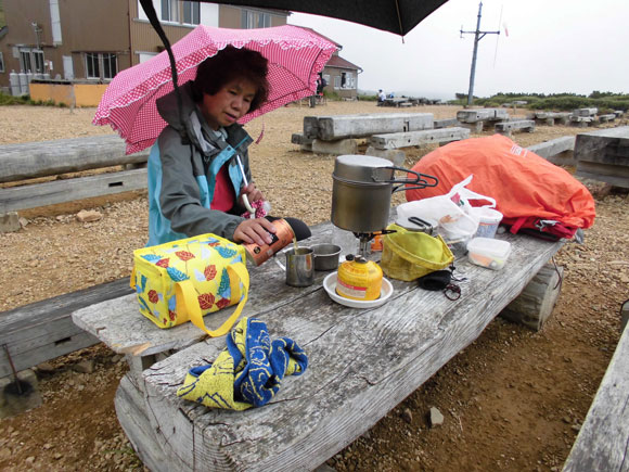 | 食事の準備をしていたら雨が降り出した。でも、負けておれない。 |