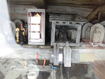| 薬師岳山頂の祠。 | 祠には、薬師如来が祀られている。 |