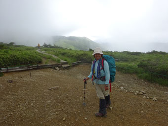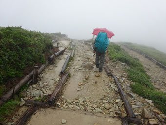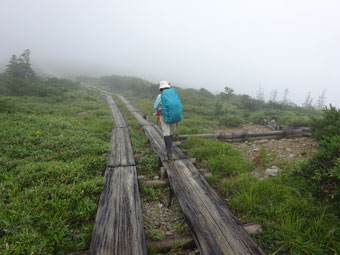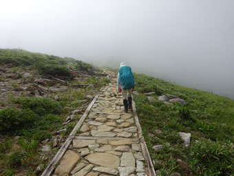 | 北ノ俣岳方面が一瞬開けた。 | 30分の休憩が終わって出発。 |