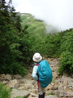 | もう少しで太郎小屋です。 | ようやく太郎小屋に着きました。(タイムオーバーです。) |
