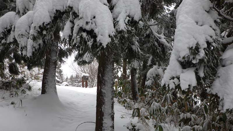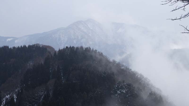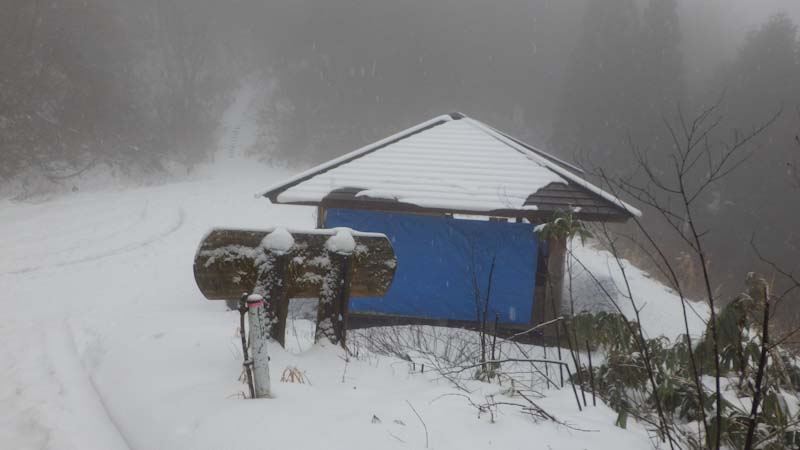 雨だったら八乙女山だったはずなのに、大寺山までというと、「山ノ神」の顔は曇った。しかし、八乙女山だけだったら、井波まで来なくても、地元の二上山でもいいはず。なので、林道歩きでも良いからになった。しかし、800mを超えた辺から、雪量が増えた。私には膝下であるが、「「山ノ神」には膝ラッセルになった。