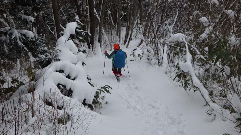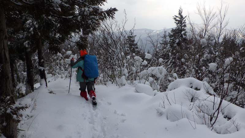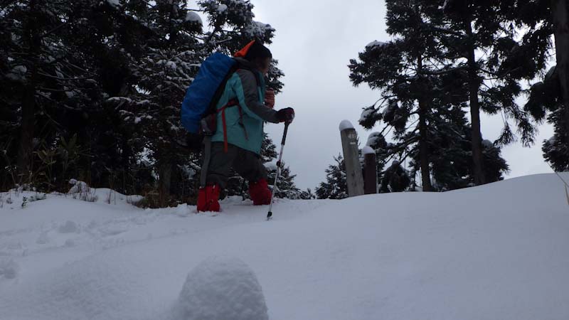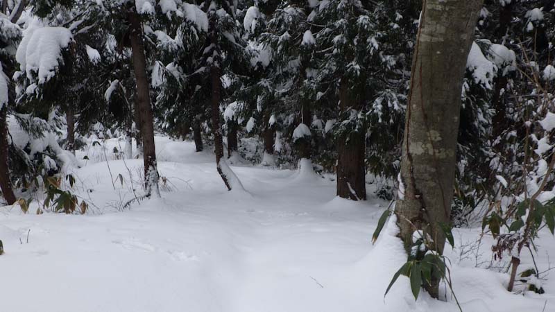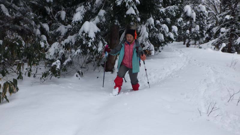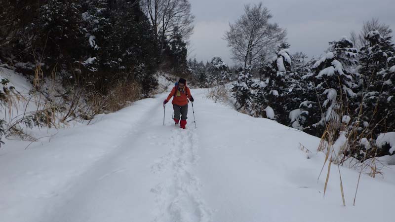 | 大寺山への林道歩きでは、スノーシューが欲しかった |