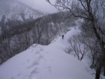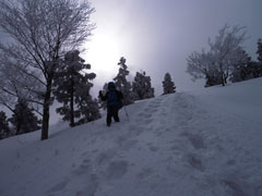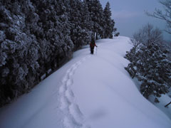 八乙女峠の東屋でコーヒーを入れたが、「山ノ神」は、プイと行ってしまった。トレースがないのに三角点や最高点が分かるのかと思ったが、三角点で追いついた。大寺山に向かう途中、「喋らないで楽しいのか?」 と逆に問われる始末。「イヤければ帰れ!」 と応酬する羽目に・・・・