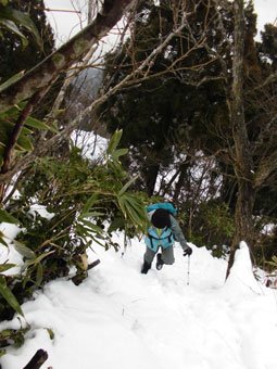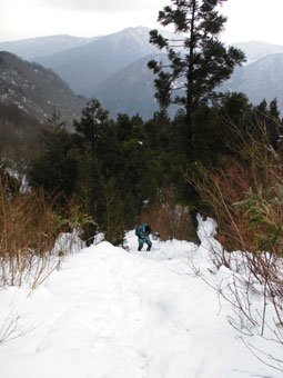 「山ノ神」の逃げ足は速かったが、でも、やっぱり急斜面の下りでは、四苦八苦が続いた。でも、復路は、踏んである事もあるが、かなり早く降りる事が出来たように思えたが、時間の経過と共に、「山ノ神」の足が止まりつつあった。それにもお構いなしに、八乙女山・最高点へ向かった。