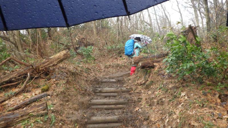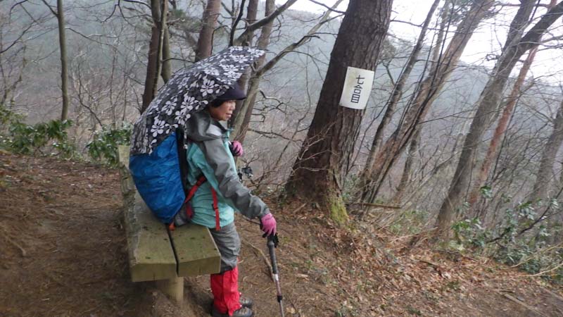六合目9:30=大平展望台・東屋10:35=八乙女山10:50=栃原峠11:40=その先終了地点12:00=東屋(12:40~13:30)=名水方面13:45=東屋13:55=六合目14:45
