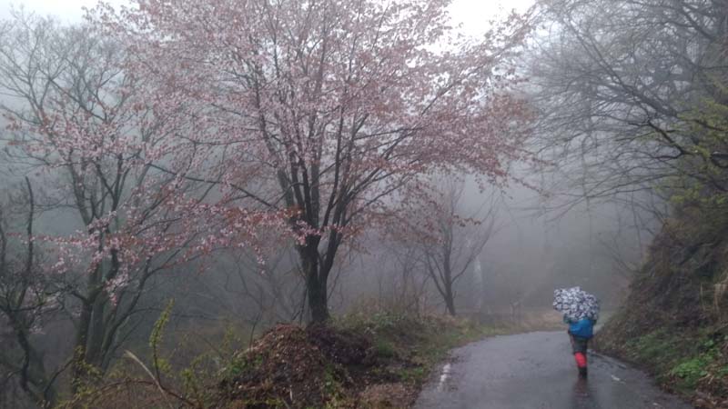 | 帰りは林道歩き。桜を眺め布滝も見ました。 |