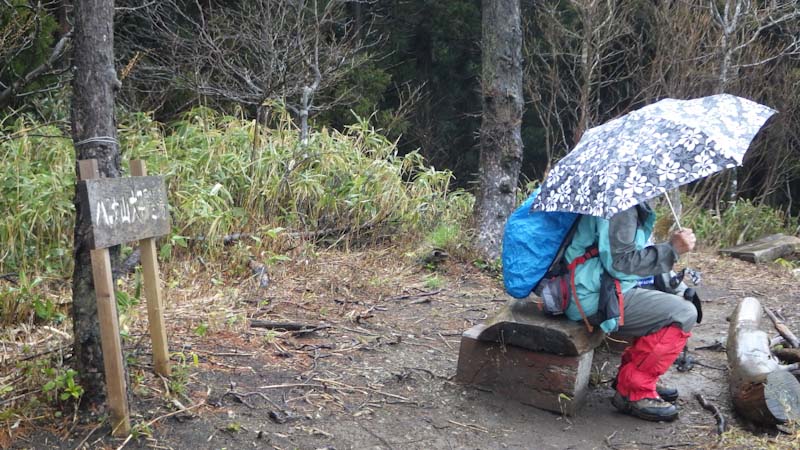 六合目8:50=東屋(10:00~25)=三角点(10:35~40)=東屋(10:50~55)=林道歩き=六合目12:10