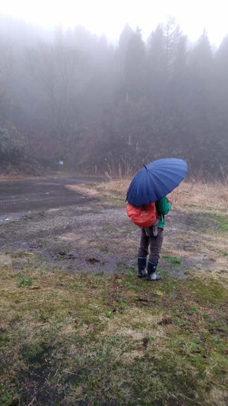 より先に50回を超えてしまいそうである。 (50回以上10座が直近の目標である。) そんな今日であるが、傘を差しながらの登高である。咲き始めたお花を眺めながらのゆっくり歩行である。雨が強くなったので、「山ノ神」を東屋に待機させ、私一人が三角点を踏んできた。のち歩いた事のない林道を帰路に充てがえた。