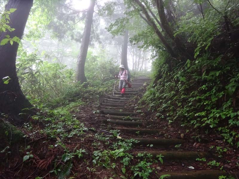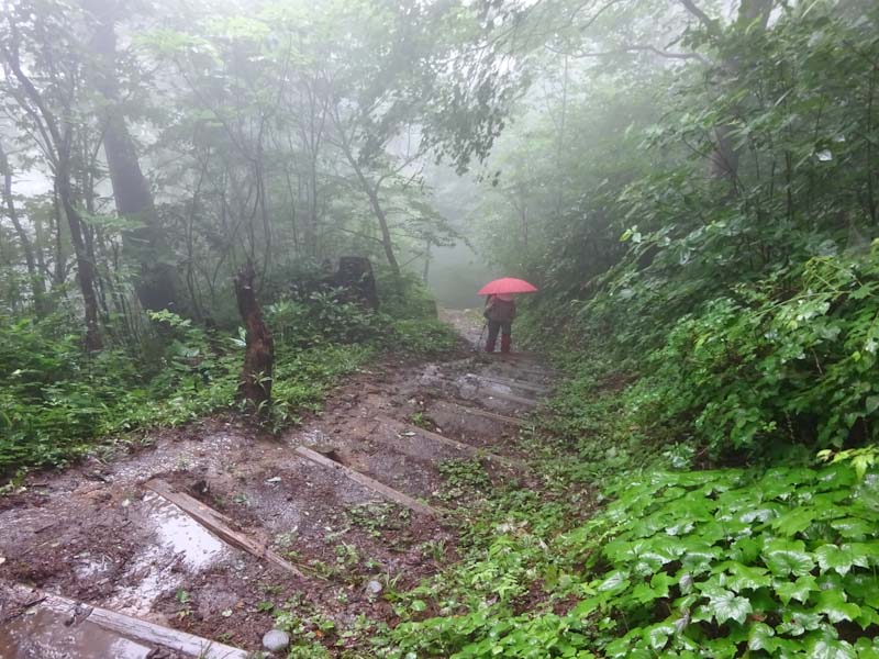 7/12 今日も雨。仕方なくと言えば良いのか、飽きもせずと言った方が良いのか、分からないけど八乙女山に出かけた。6合目で準備をしていると、カズミン・perの師弟コンビが降りて来られた。お互い「えぇ~」 であったが、この師弟コンビは、夏山縦走に向けての訓練であったそうだ。雨の中、17キロを担いで2往復の予定らしかったが、いろいろあって1往復となったようだ。こんな凄い人達と付き合うのは、今の私にはちょっとであるから、誘われないようにしなければならない。(笑)