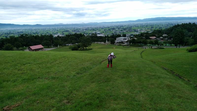 閑乗寺公園の芝生を降りる。(旧ゲレンデ)