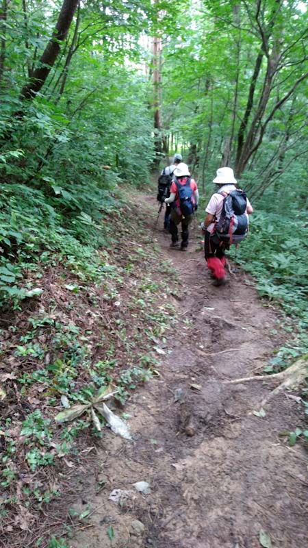 一応「山ノ神」の要望を聞いたのであるが、「あんたね。この時間から、あんたの足で行けるハズがないでしょう。」 の言葉で、またまた沈黙の ” お互い単独行 ” が始まった。ちょっと行っては止まる。ちょっと行っては水を飲むが続く。「そんなので・・・」は、言わなかった。言ったらおしまい。