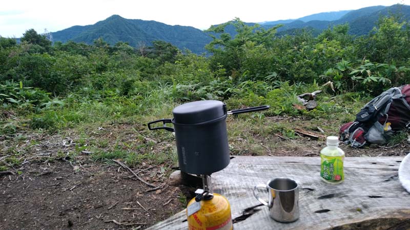 雨降る前、そして、少~し風がある。大平展望台でコーヒータイムである。そうなれば喋らないわけにはいかず、「飲むか?」 になる。東屋までちょっとであるが、私はここから眺める牛岳が好きである。霧雨が落ちても屋根のない開放感もいい。積雪期で眺める位置が嵩上げされるともっといい。