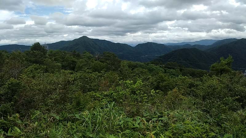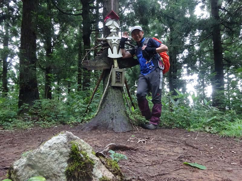 牛岳がスッキリ見えたが、今にも降りそうな気配を感じ、今日はこれまでとなった。「山ノ神」は、下山に掛かったが、私は、三角点と最高点を踏んで来る事にした。駆け足のようになると余計に汗が流れる。でも、6合目で追い付いた。車に戻ろうとした時、昨年小白木峰・白木峰の帰りにお世話になった今井氏と遭遇。(彼は、これから八乙女山に・・)