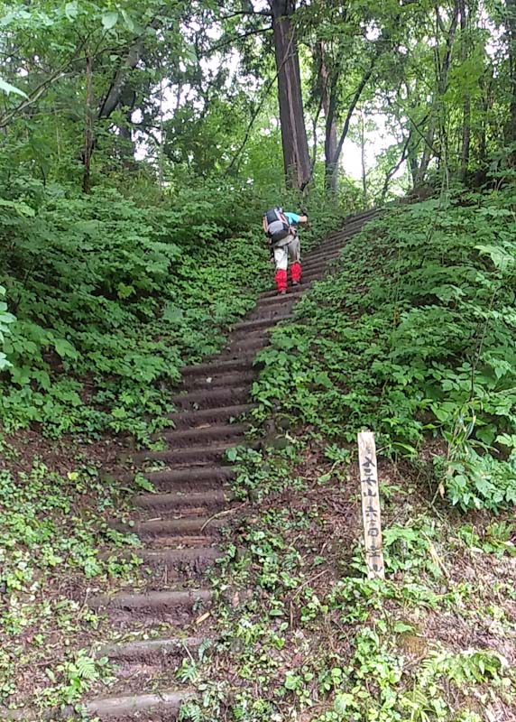 7/5 朝方の雨で意気消沈。メジャーリーグの大谷選手を見てしまった。(結果は31号) 止むのを見計らって八乙女山に出掛けた。他の山へは行く気力を失ってしまったのもある。展望駐車場からのスタート。ちょっとでも多く歩こうと6合目までは林道を歩いた。