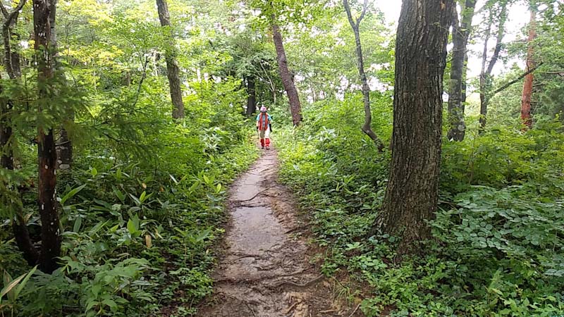 登山道は、グチャグチャの所もあったが、傘を差さなくて良かった。