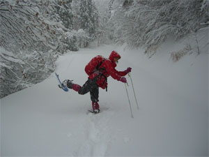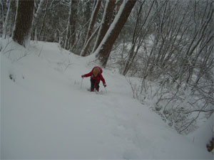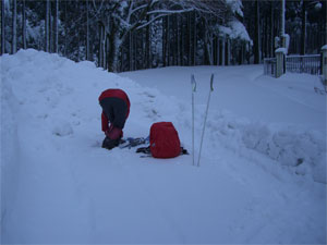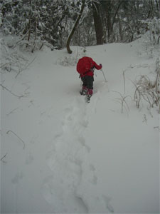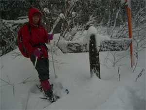 | 平成20年八乙女山一番乗りには、ラッセルが待っていた。 | 林道との分岐 |