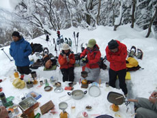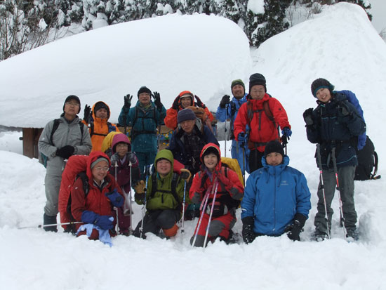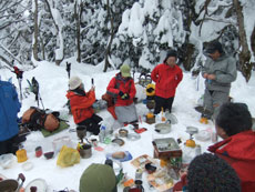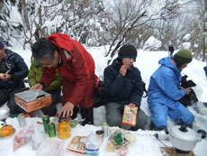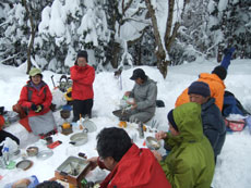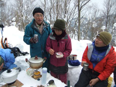 | 昼食(宴会)予定の所であったが・・・ | 時間が早過ぎて山頂に向かう。 |