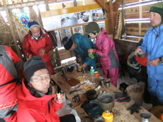 | キノコが気になる、マー君と伸子さん。 | 池田氏・シゲキさん・吉尾氏が続く。 |