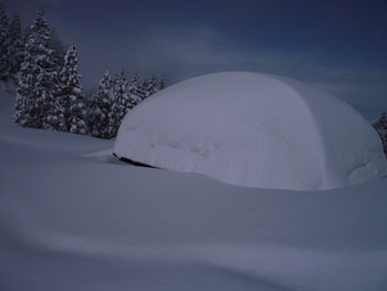 八乙女峠の東屋が雪で埋まりそうであった。 |